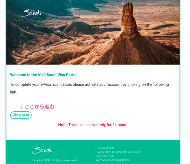 後日談だが、サウジアラビア弾丸旅行を終えて帰国したら、このビザシステムよりメールが届いていた。