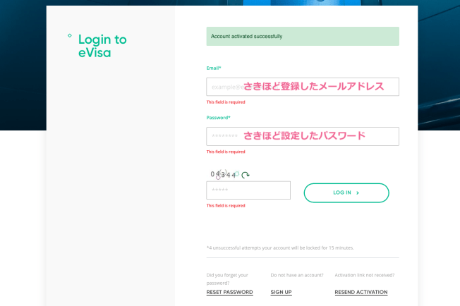 これでビザ申請システムアカウントの作成は完了。