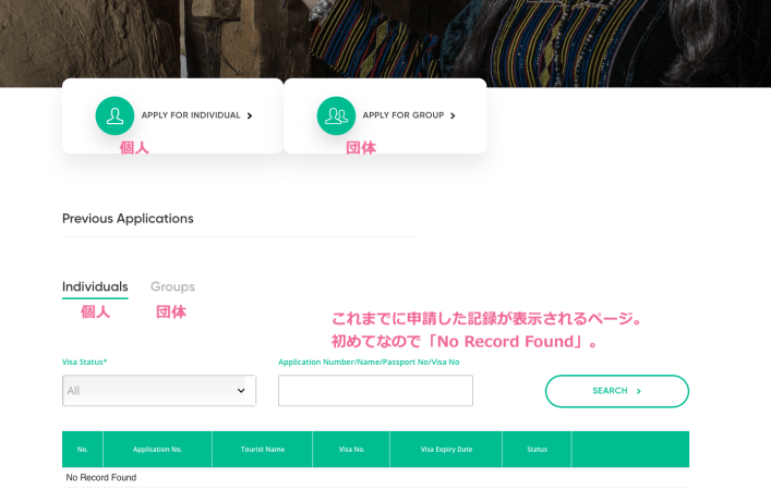 ビザ申請システムへログイン